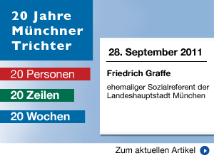 Und sofort hatte ich wieder die Debatte um die Fragen, was die eigentlich wollen, ob es die überhaupt braucht und was die denn zur jeweiligen fachlichen Aufgabe beitragen könnten. Ich habe es nie bereut, die Beteiligung des Münchner Trichters immer eingefordert zu haben. In all den Jahren waren die darin zusammengeschlossenen Organisationen Initiator und Träger neuer Ideen, waren mutig, Neues auszuprobieren, haben den Kinder und Jugendlichen in München viele schöne Stunden beschert und unendlich viel dazu beigetragen, dass in München „Nie nichts los ist“. Ganz persönlich bin ich dem Münchner Trichter und einigen seiner Mitglieder dankbar dafür, dass sie vor wenigen Jahren innerhalb kürzester Zeit mit anderen zusammen ein komplettes Ferienprogramm auf die Beine stellten und mir damit über den Wegfall eines Veranstalters hinweg halfen. Ich wünsche dem Münchner Trichter weiterhin die Kraft für Neues, für die Fortführung dessen, was sich bewährt hat und beliebt ist, vor allem aber die Kraft, den Belangen und Interessen von Kindern und Jugendlichen Geltung zu verschaffen.
