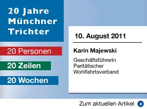 Den Münchner Trichter gibt es nun schon 20 Jahre lang. Und lang fragen sich die Wohlfahrtsverbände auch schon, warum es ihn überhaupt gibt, den Münchner Trichter. Aber manche Organisationen können – glaube ich – gut und in Ruhe gemeinsam altern.