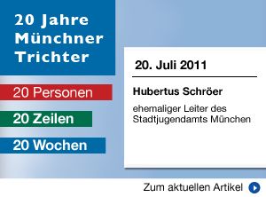 Einfach war es nicht, verbandsfreie Träger der Kinder- und Jugendhilfe als Mitglieder in den Kinder- und Jugendhilfeausschuss zu berufen. Aber die historische Situation war günstig: ein neues Gesetz, ein neuer Ausschuss, ein neuer Jugendamtsleiter. Nach heftigen Diskussionen konstituierte sich 1991 erstmals ein KJHA mit drei VertreterInnen von nach § 75 SGB VIII anerkannten Trägern. Die Erwartungen waren hoch: das neokorporatistische Kartell von öffentlicher und freier Wohlfahrtspflege sollte aufgebrochen, der Ausschuss zum Podium offener Diskussionen, alternativer Argumente und innovativer Ideen werden. Das war zugleich die Geburtsstunde des „Münchner Trichters“, nicht als 6. Verband, sondern als Organisation gewordener Aufbruch, „um anders zu sein und mitzumischen als gestaltende Kraft“, wie an anderer Stelle auf dieser Seite zu lesen ist. Seitdem sind manche Initiativen vom Trichter ausgegangen, er ist zu einem sozialpolitischen Faktor in München geworden und aus der sozialen Landschaft nicht mehr wegzudenken. Vielleicht auch dadurch scheint die Szene offener geworden zu sein, sind alte Kampflinien weniger spürbar. treffen sich (fast) alle im „Bündnis München sozial“. Aber ist auch die Gleichung aufgegangen klein gleich flexibel, innovativ, quer denkend versus groß; unbeweglich, verharrend? Tritt der Trichter noch als anregender Faktor auf oder dominieren Eigen-Interessen die Arbeit? Gibt es wirklich eine schlagkräftige Organisation oder nur das Engagement (zu) weniger? Ich wünsche dem Münchner Trichter Widerspruchsgeist und Widerstandskraft! Ich hoffe auf viele weitere Anstöße in der offenen Kinder- und Jugend(kultur)arbeit. Und ich wünsche vor allem Erfolg beim zu recht benannten Zukunftsthema Bildung und bei der Kooperation von Jugendhilfe und Schule!